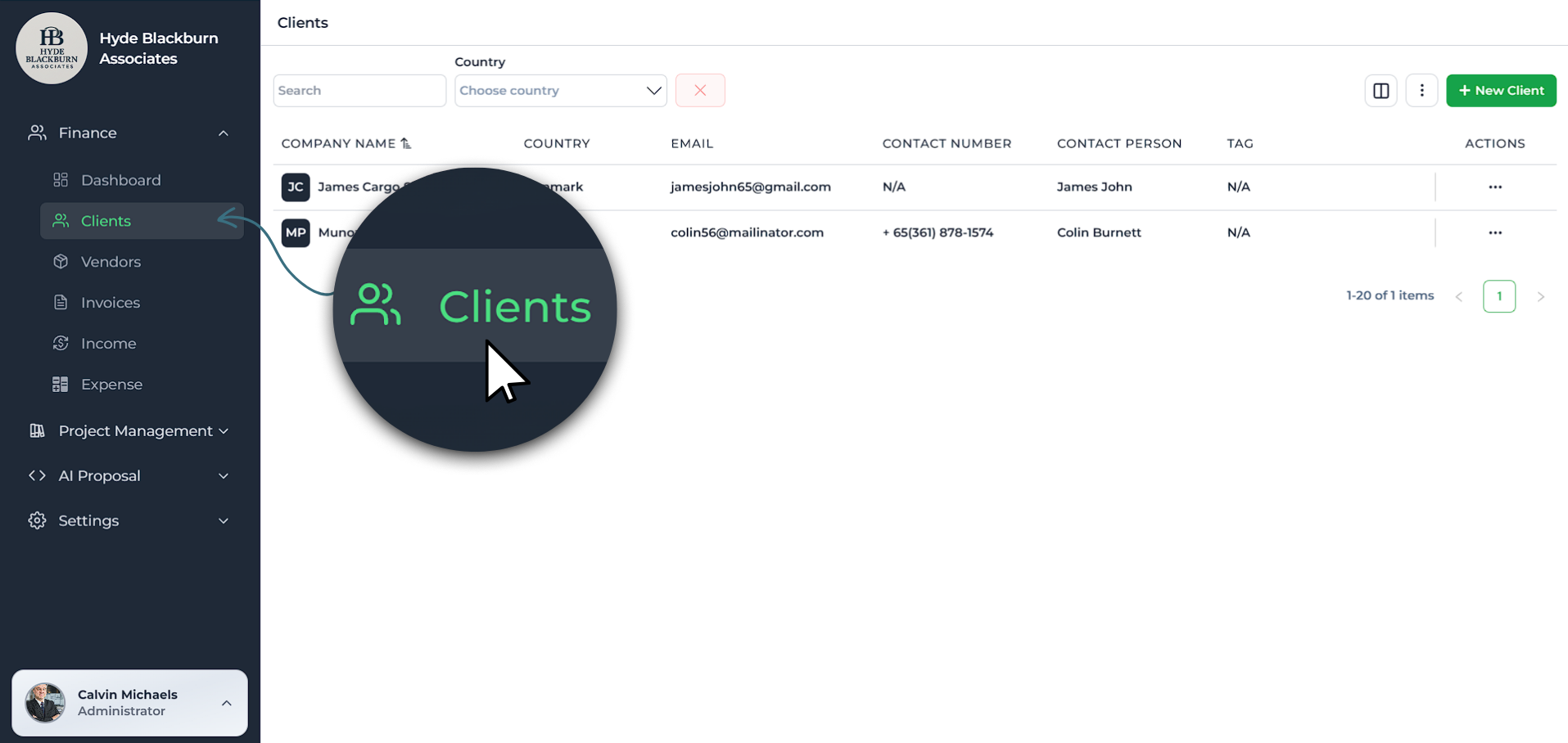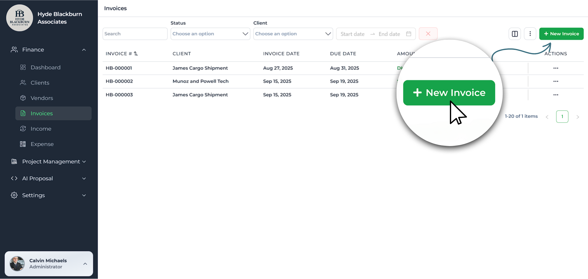 Before creating any invoice, you’ll need to add your client details. Go to the Clients section and click Add Client.