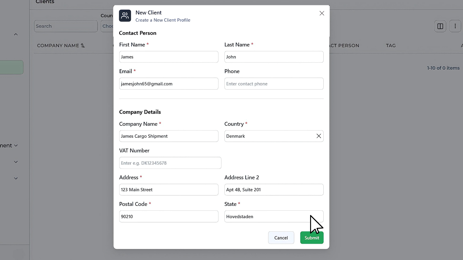 - Once all details are filled in, click Submit.
