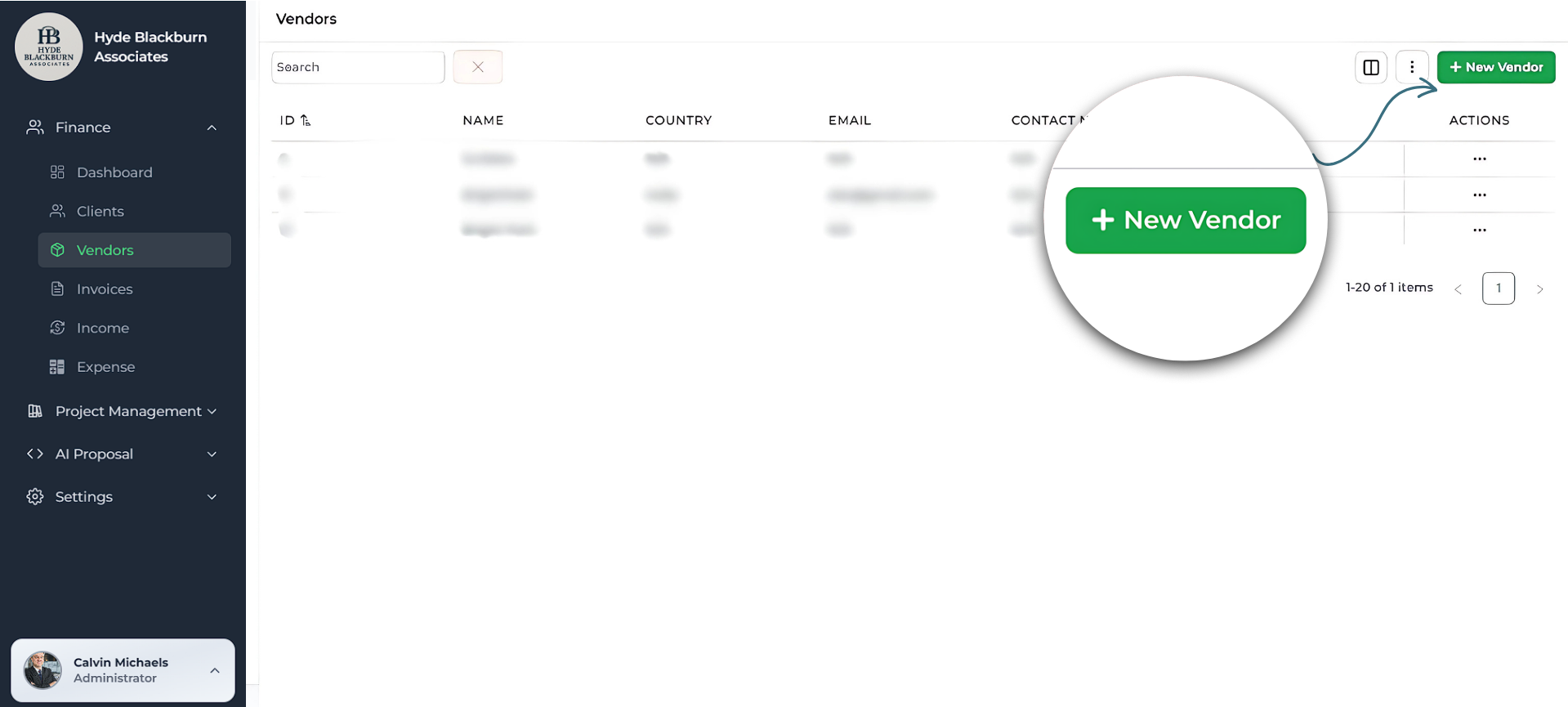 - Click + New Vendor in the top-right corner.